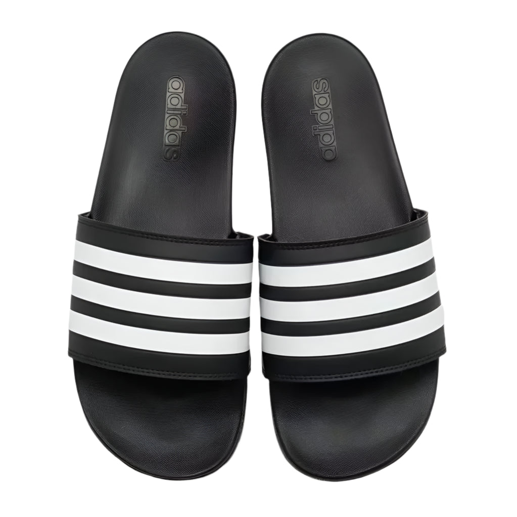 Adidas Adilette Comfort Slides - Black with White 3-Stripes