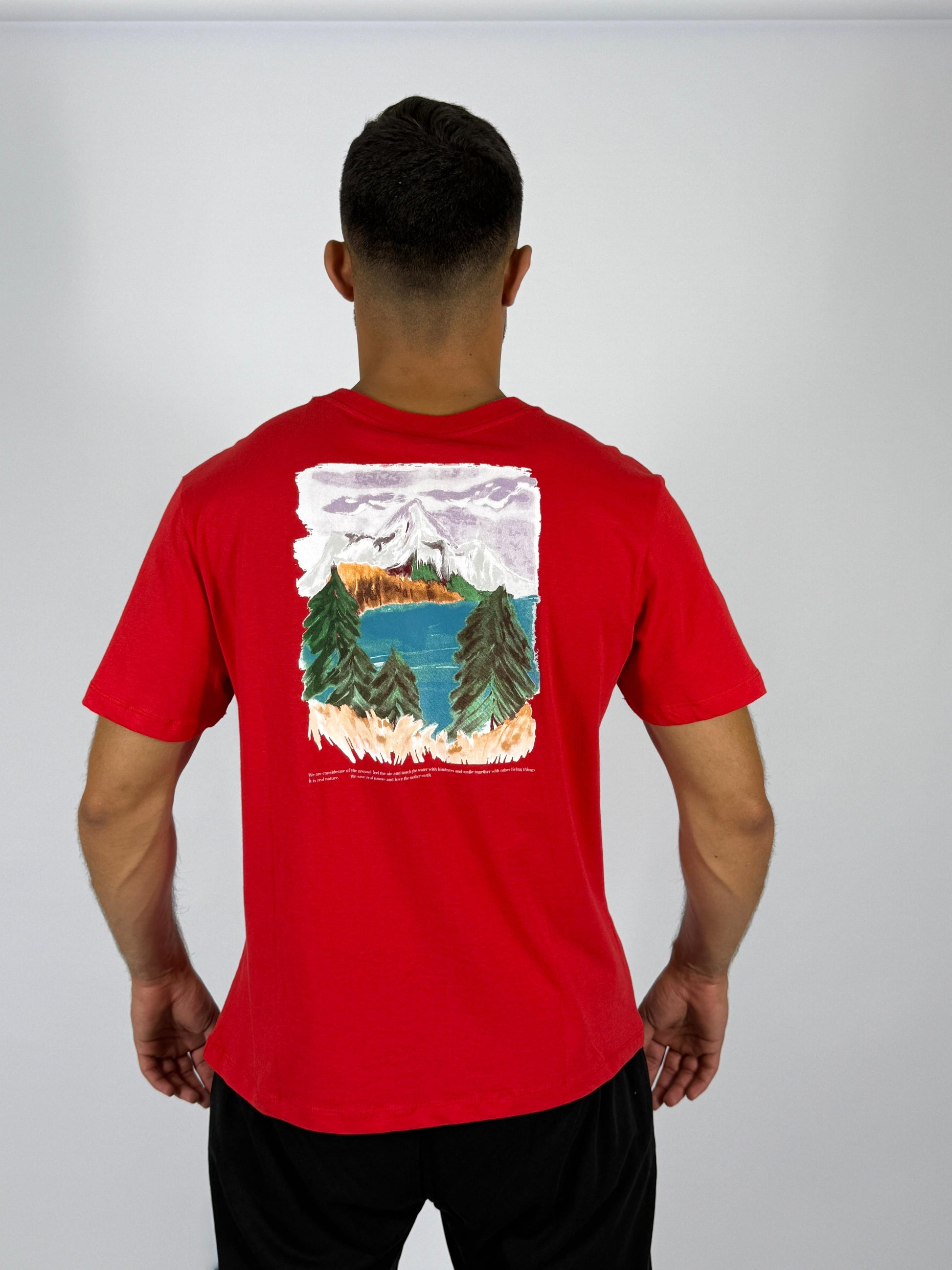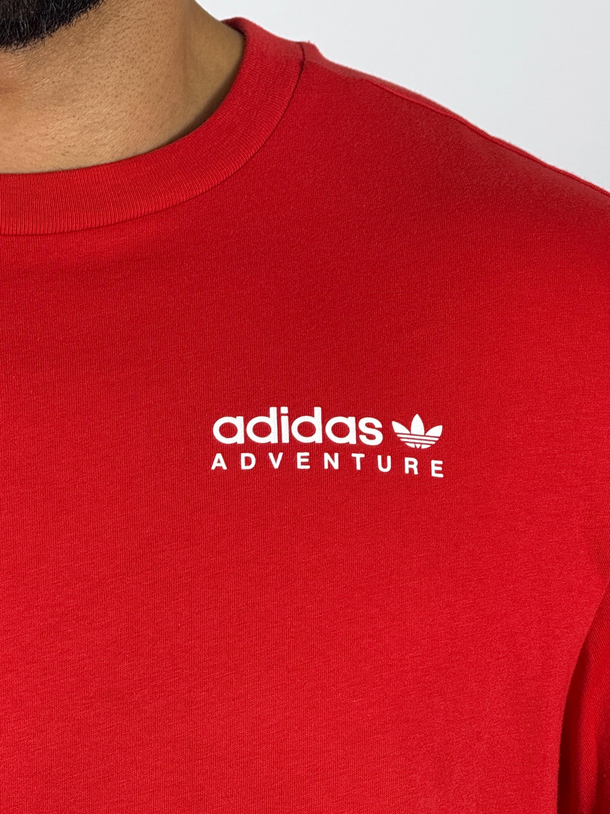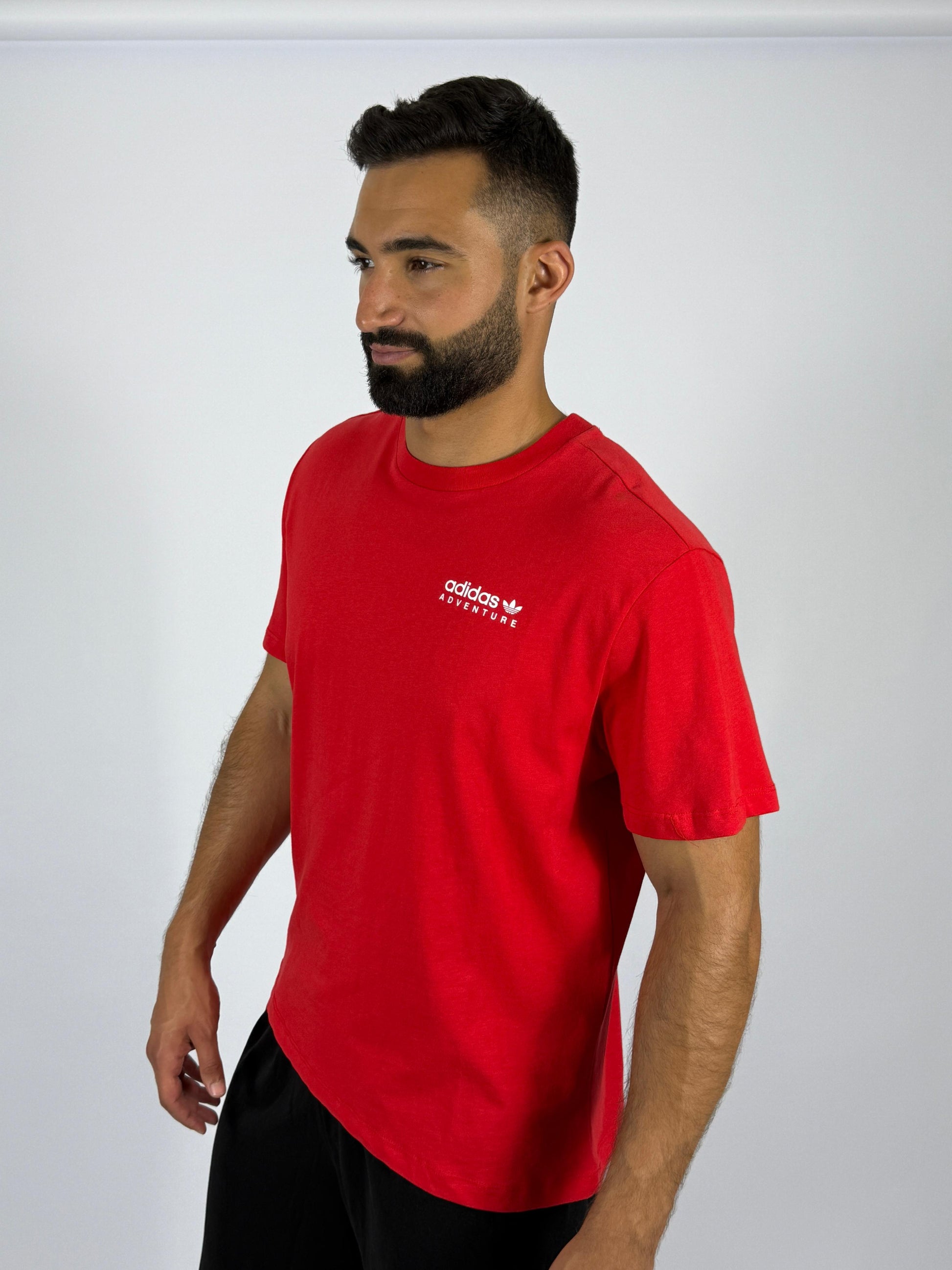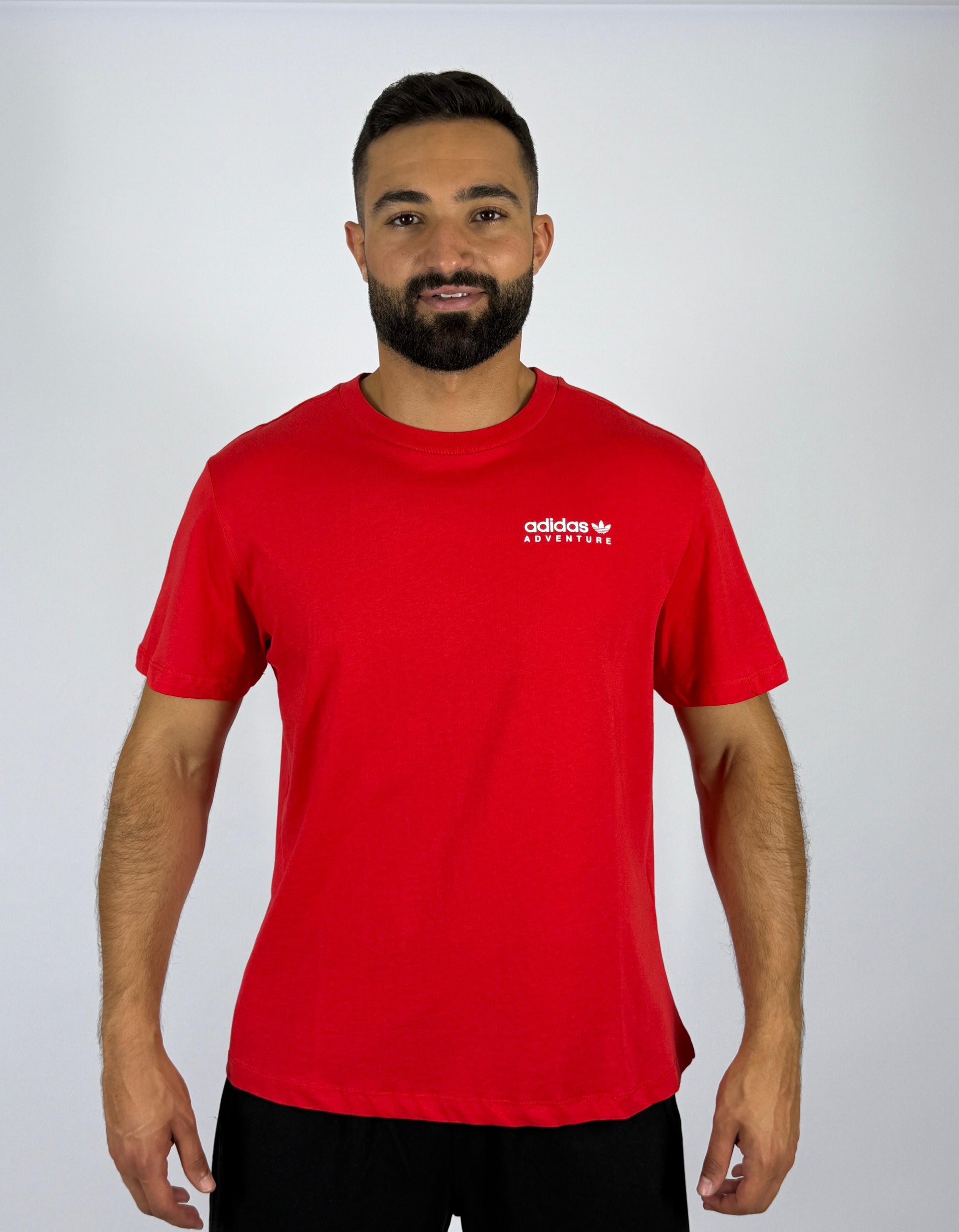 Men's Adidas Adventure Logo T-Shirt - Vibrant Red Outdoor Inspired Tee