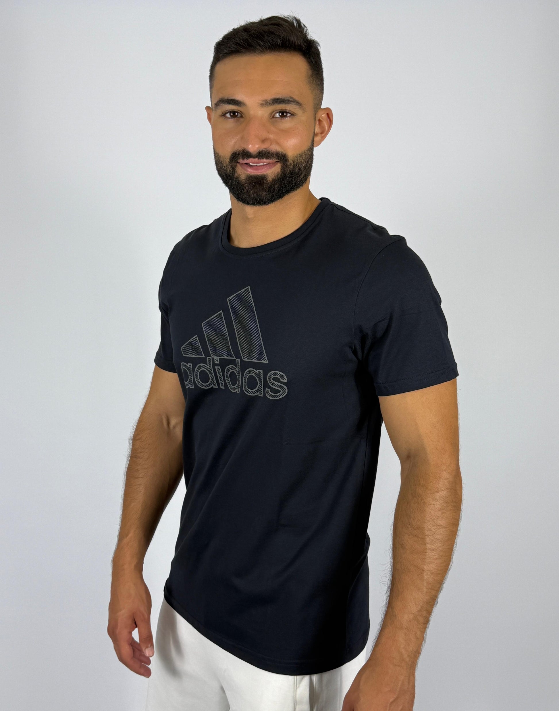 Men's Adidas Outline Badge of Sport Logo T-Shirt - Black Subtle Graphic Tee