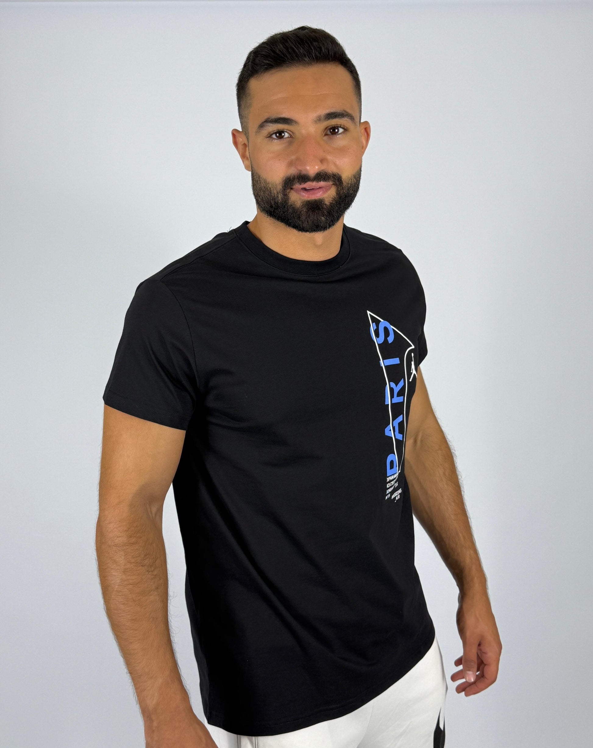 Men's Jordan x PSG Vertical "Paris" Logo T-Shirt - Black Football & Basketball Crossover Tee