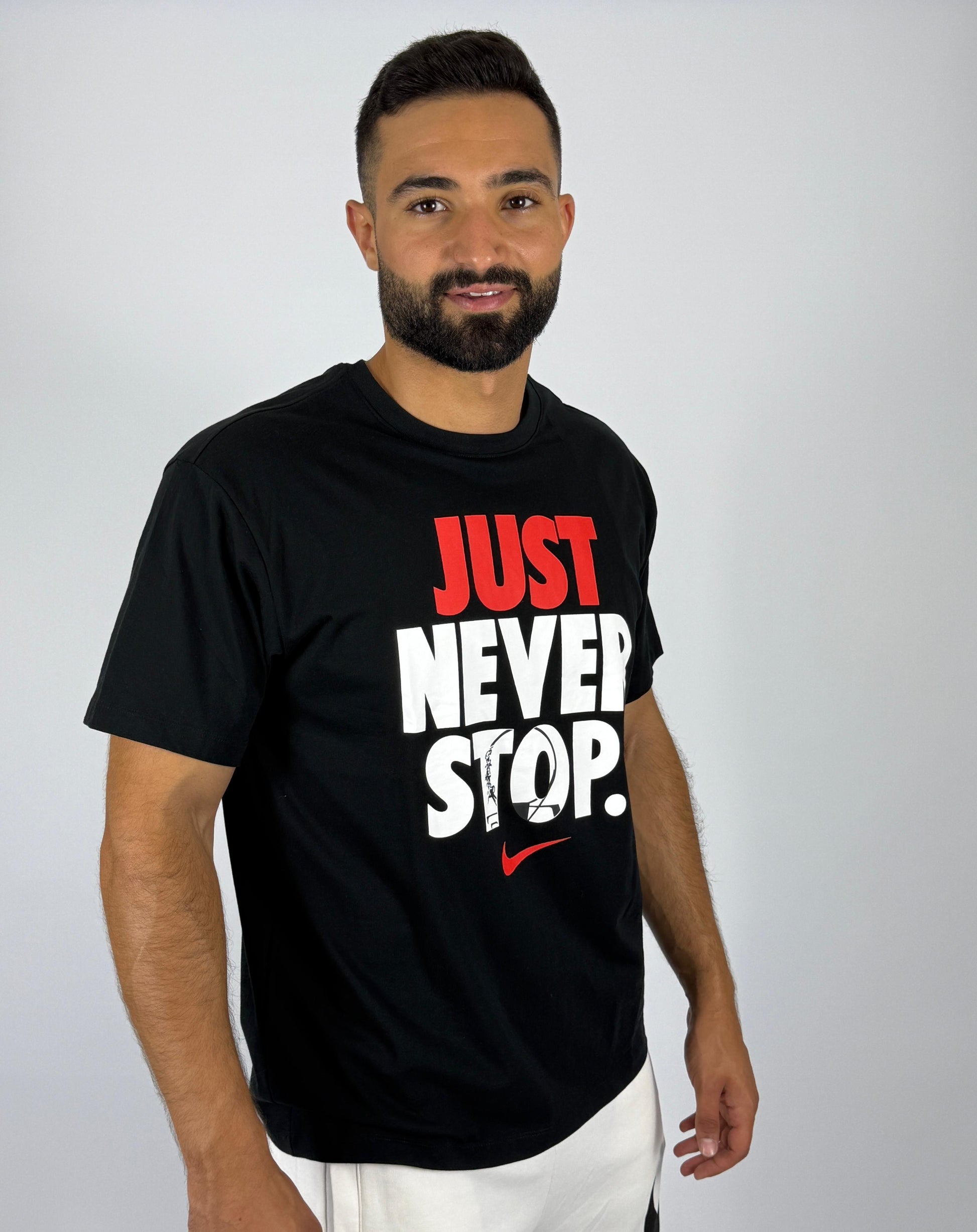 Men's Nike "Just Never Stop." Graphic T-Shirt - Black Performance Tee