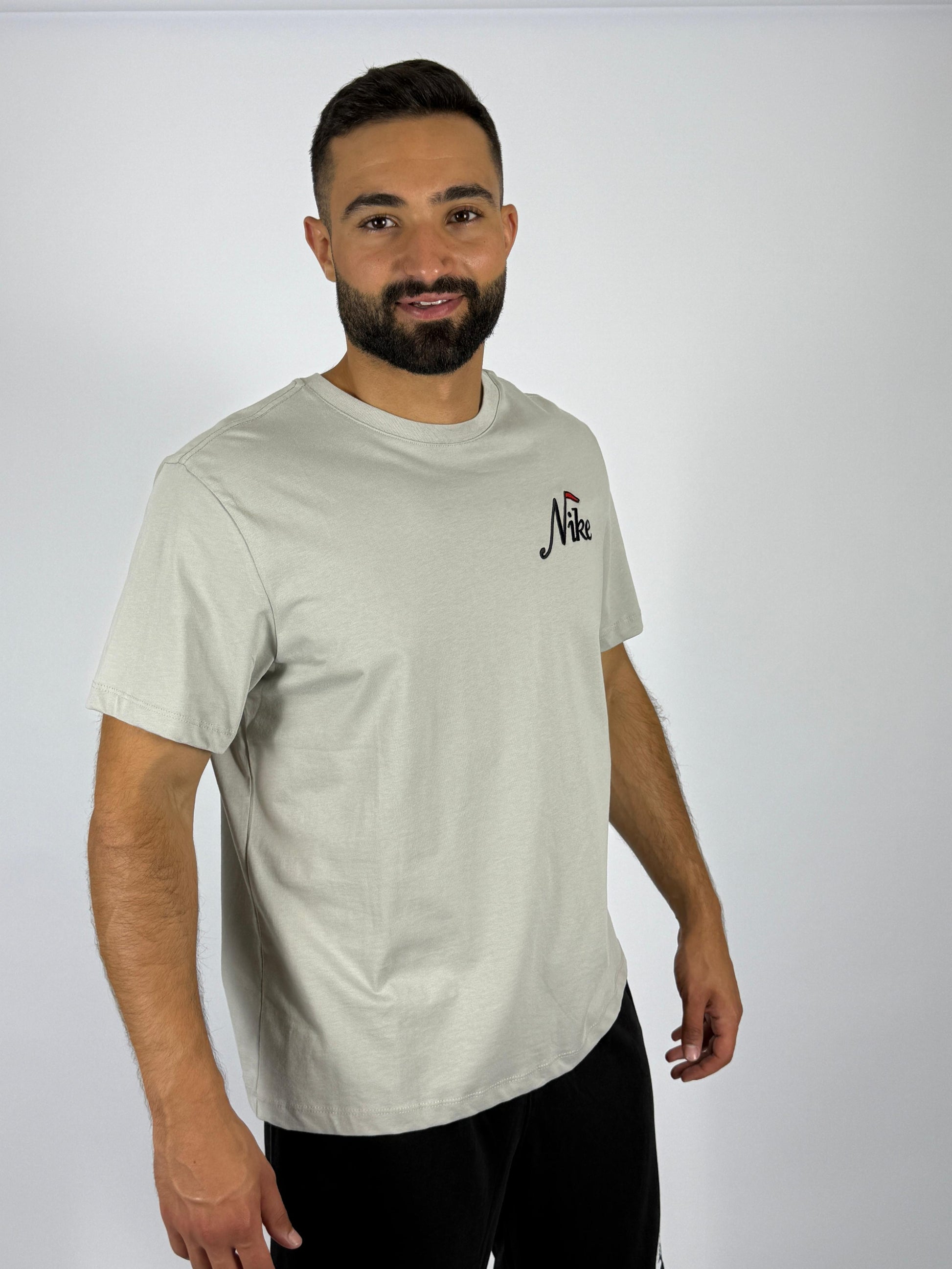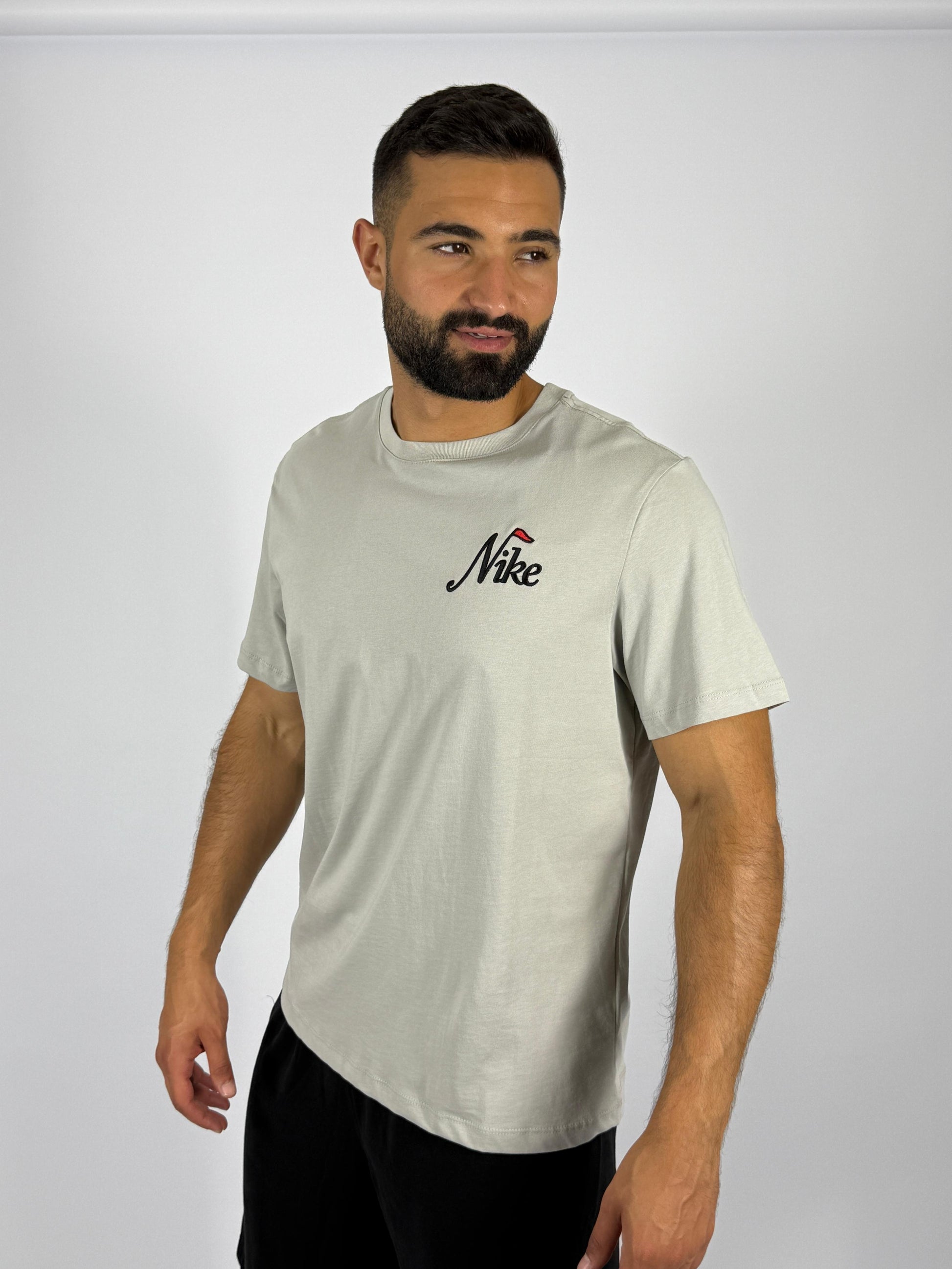 Men's Nike Sportswear Retro Script Logo T-Shirt - Stone Grey Heritage Tee