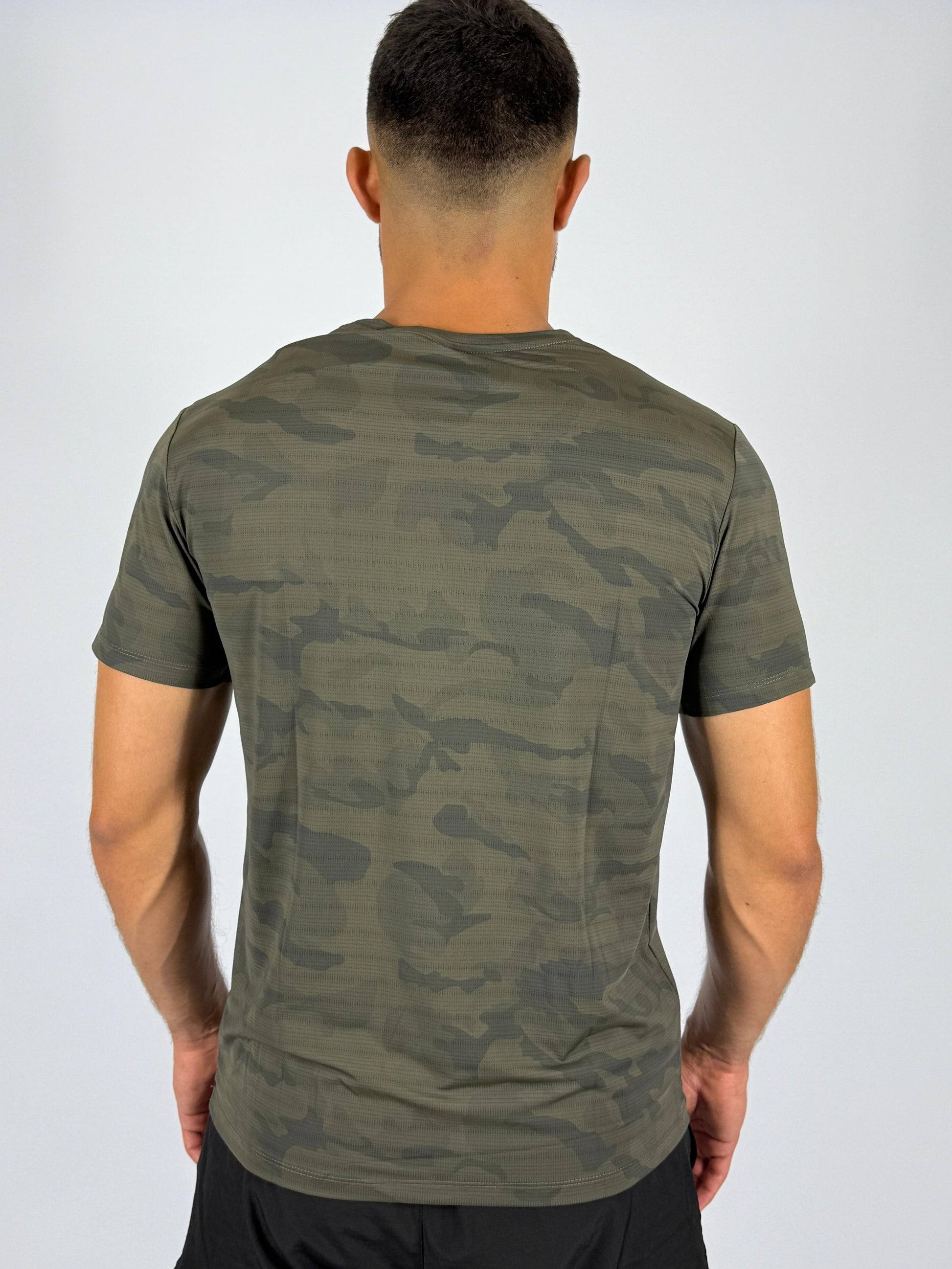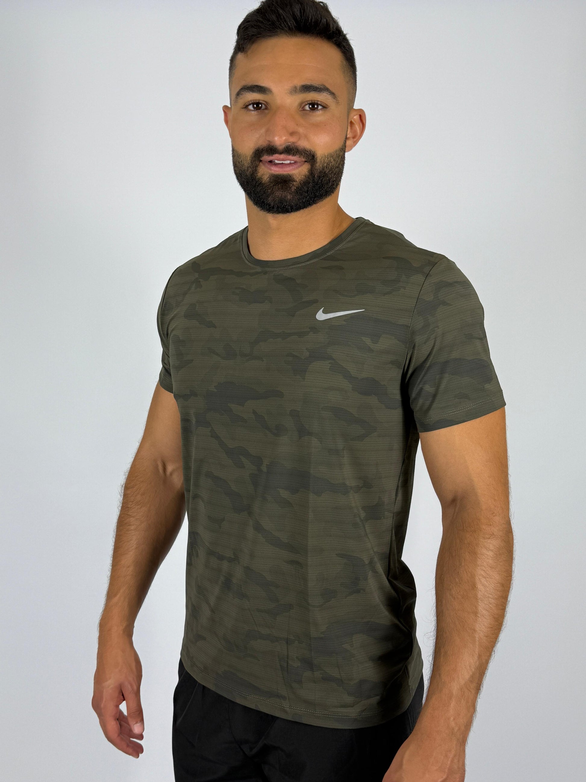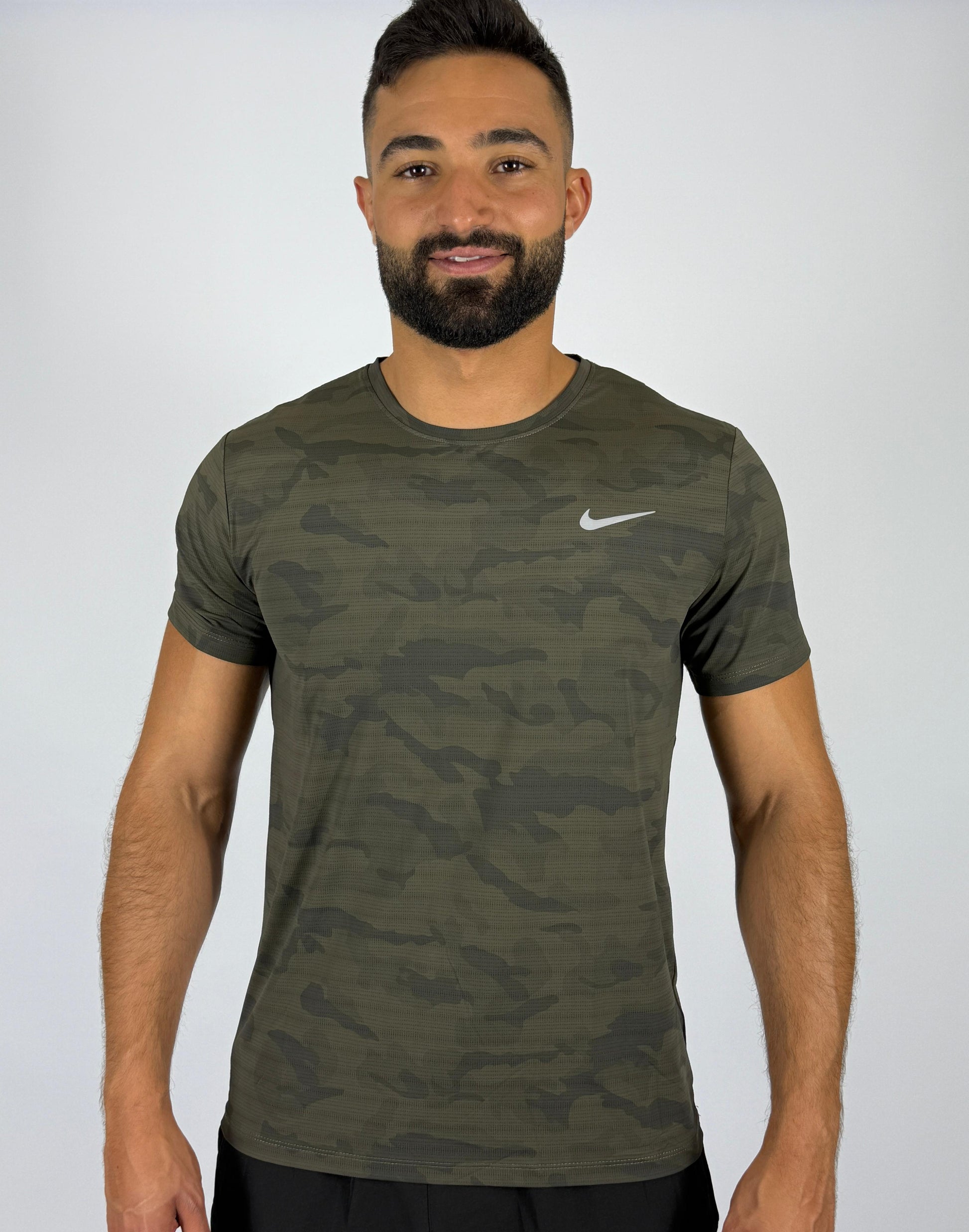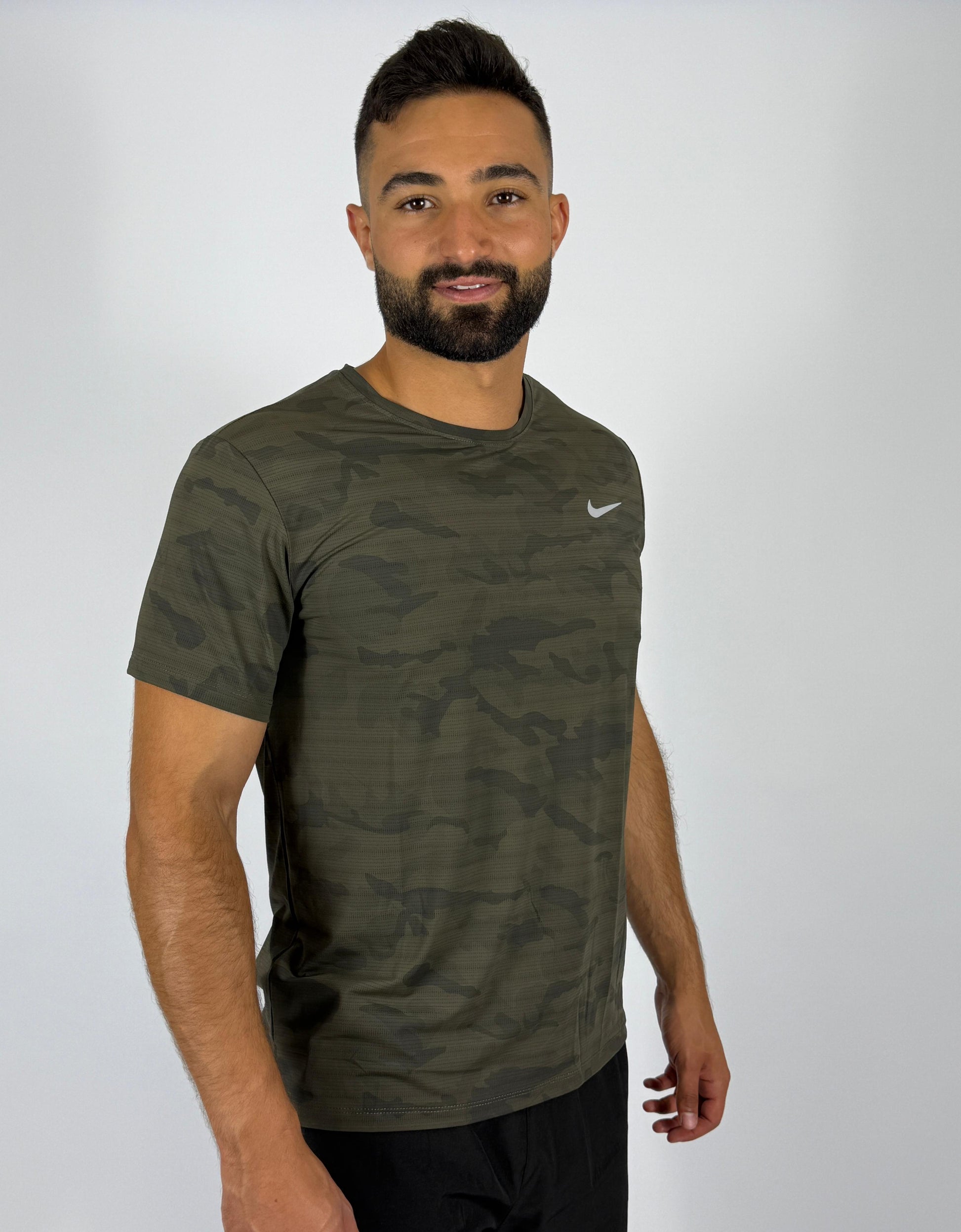 Stay comfortable and look great during your workouts or everyday activities with this Nike camouflage t-shirt. The Dri-FIT technology wicks away moisture, keeping you cool and dry. The stylish camo print adds a touch of personality.