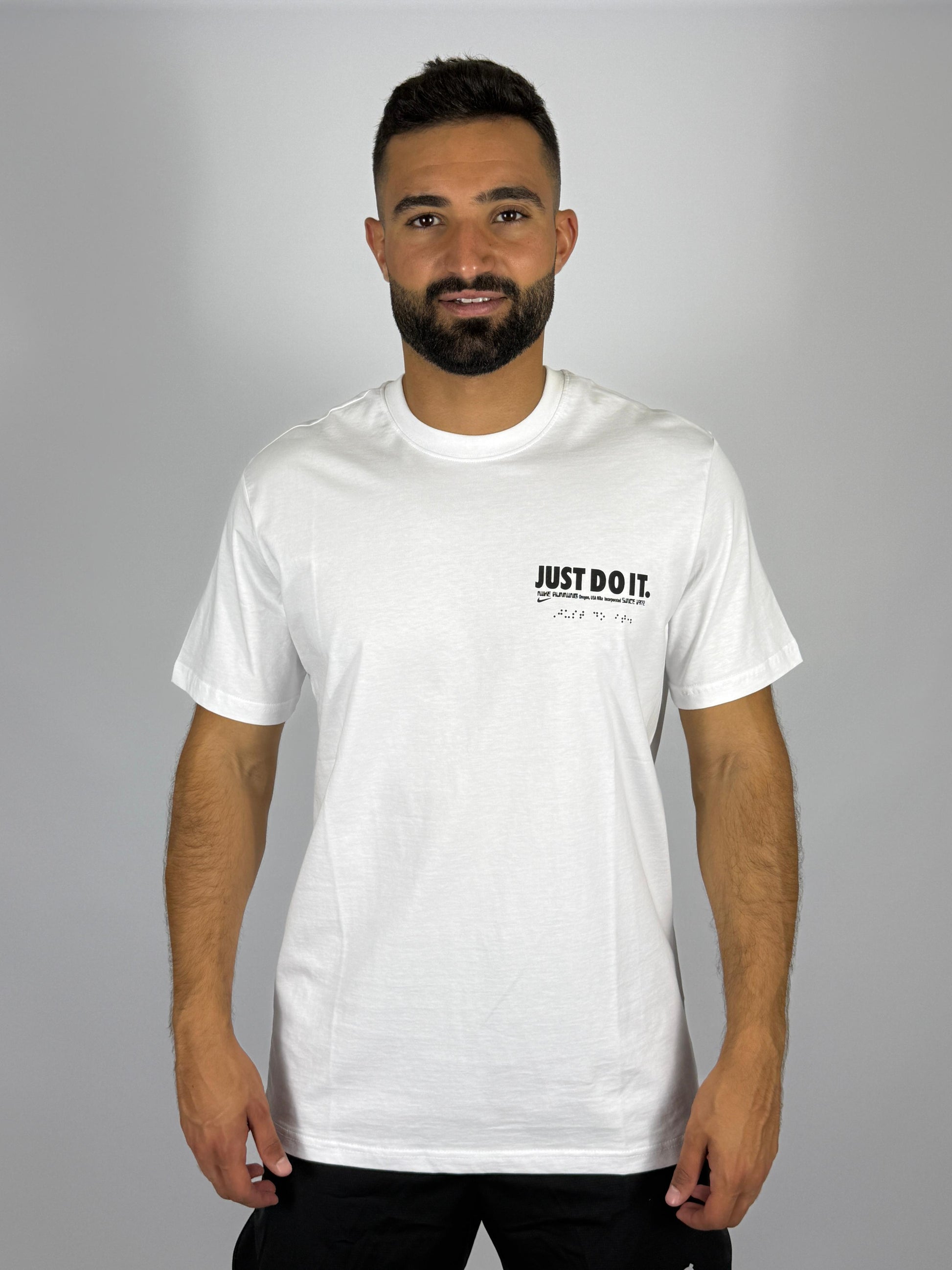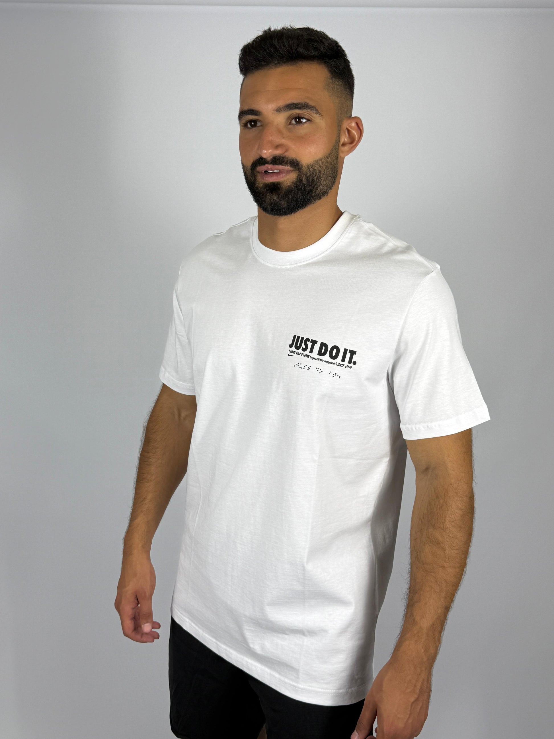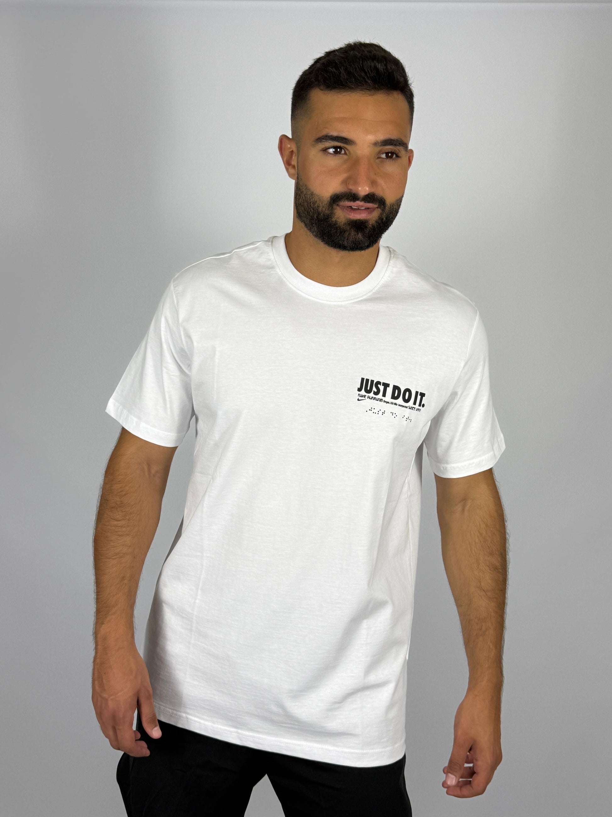 Embrace the iconic slogan with the Nike Men's "Just Do It." Graphic T-Shirt. Made from soft, comfortable cotton, this classic tee features the motivating phrase on the chest. Its versatile design and timeless appeal make it an essential addition to any casual or athletic wardrobe.