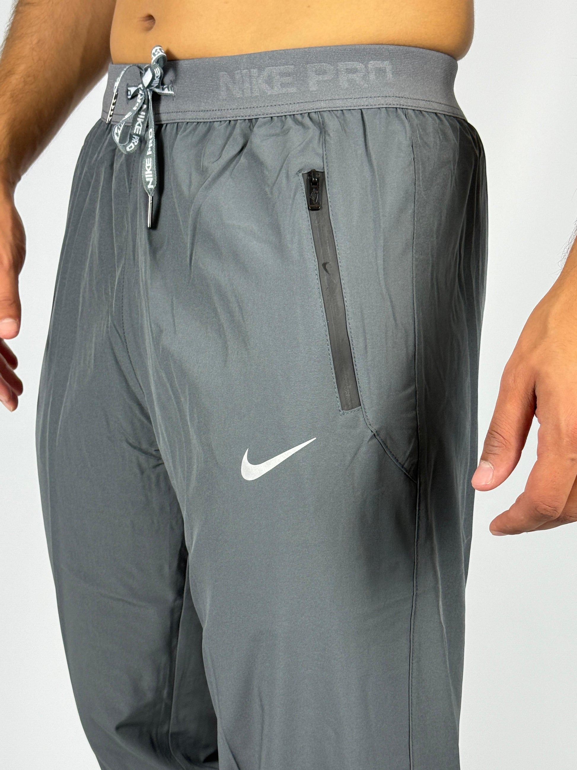 Elevate your activewear with these Nike performance woven pants. Made from a lightweight, durable fabric, they feature a slim fit for a modern look and zippered side pockets for secure storage. The elastic waistband with Nike branding and the iconic Swoosh on the thigh add a touch of classic athletic style, perfect for warm-ups or casual wear.