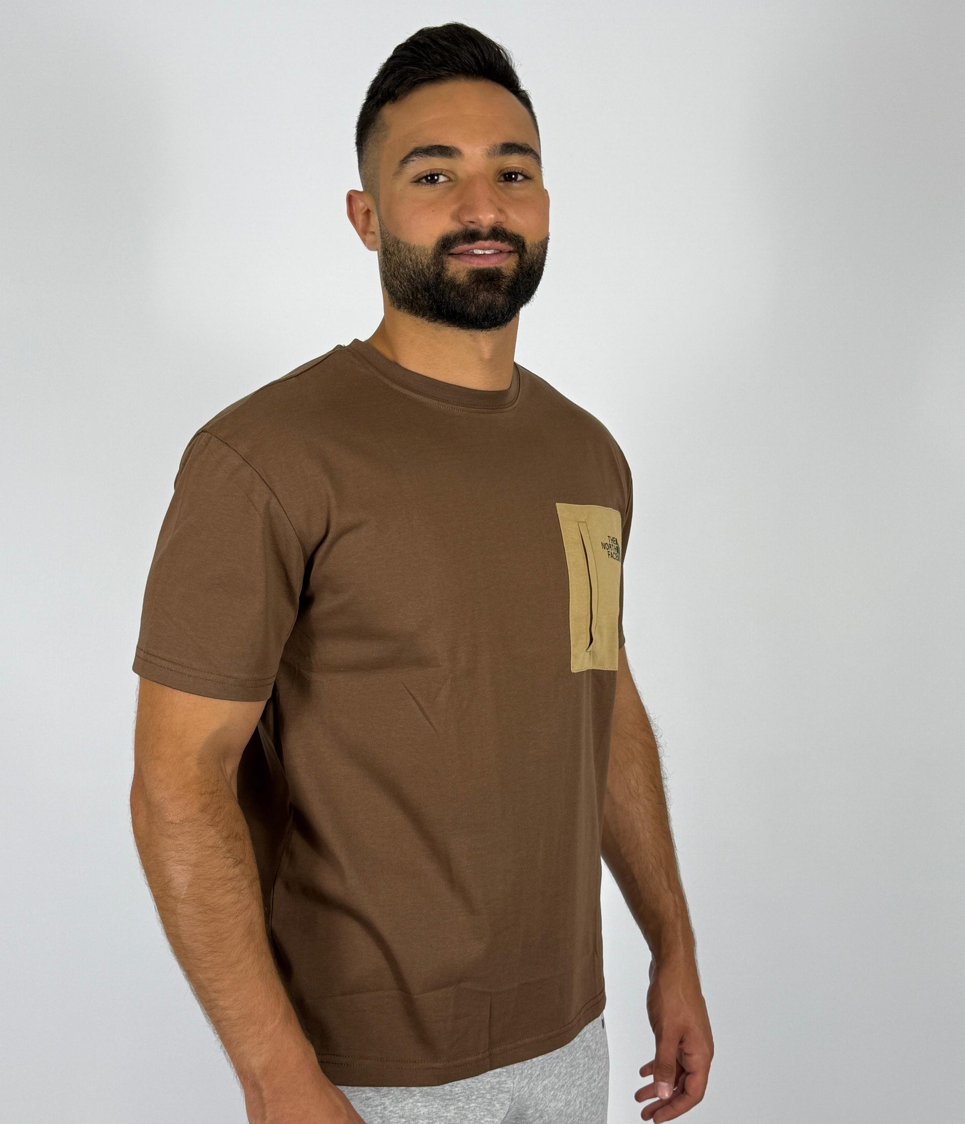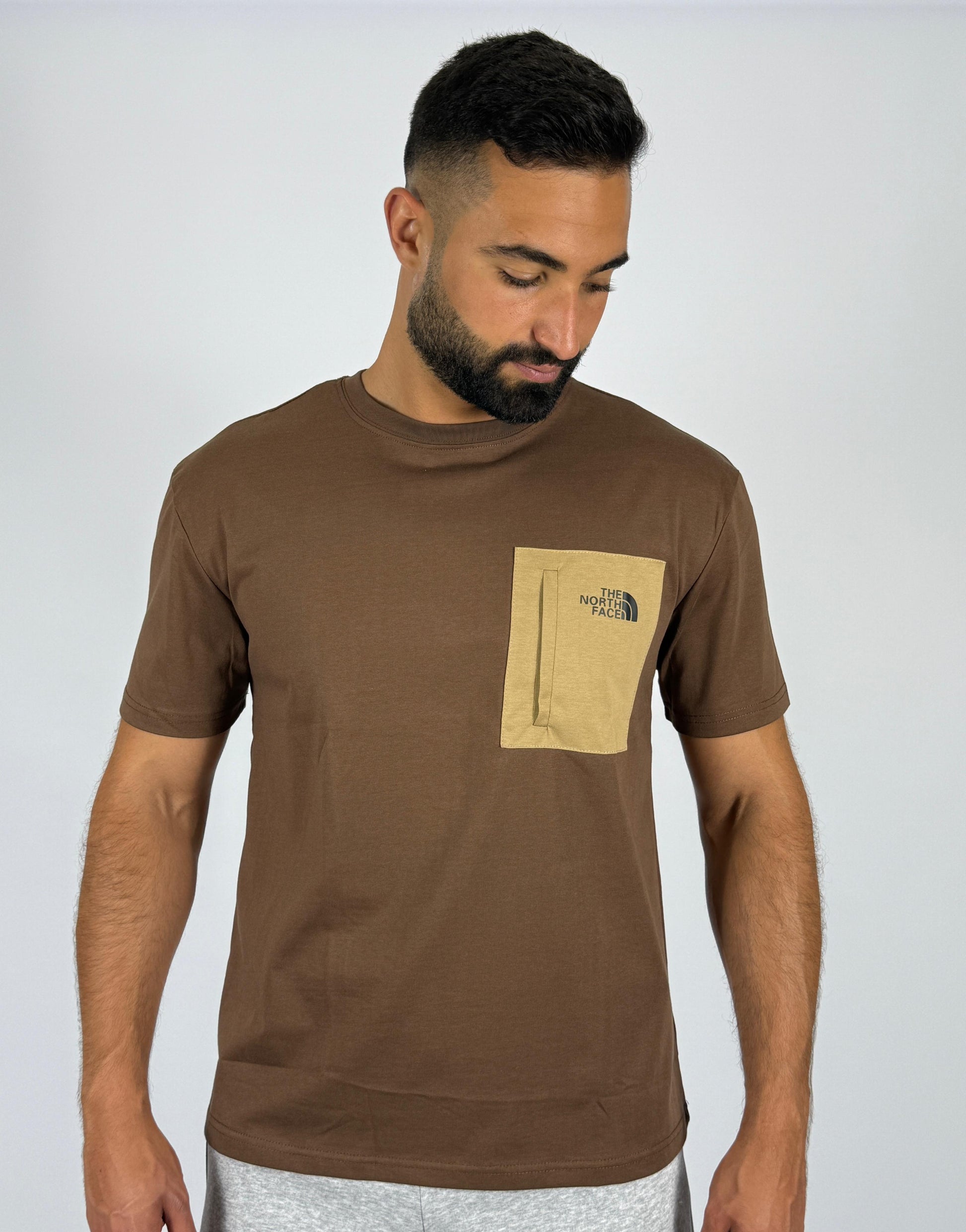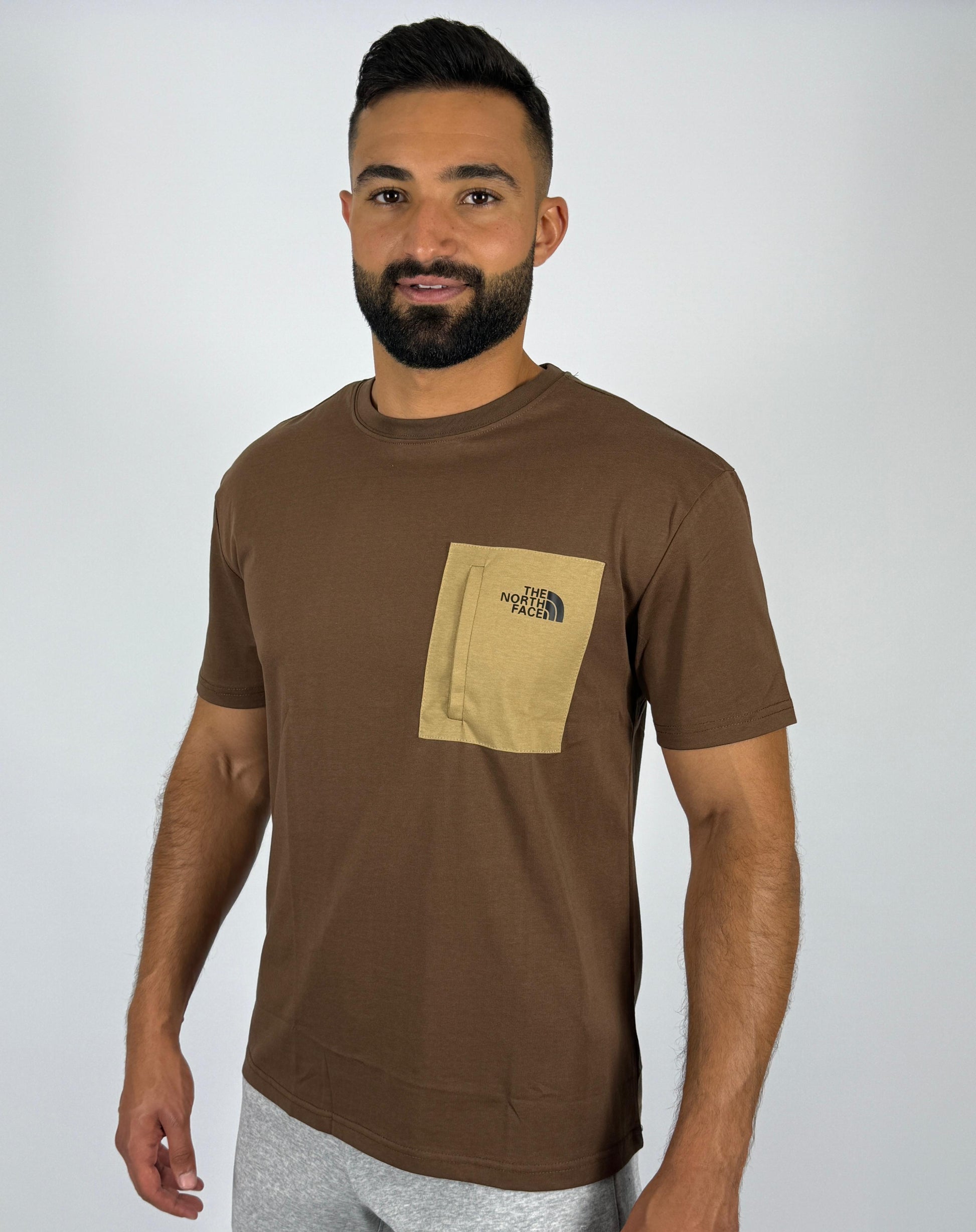 Stay comfortable and stylish with this versatile The North Face t-shirt. The durable cotton construction and convenient chest pocket make it perfect for everyday wear. The understated brown color complements any outfit.